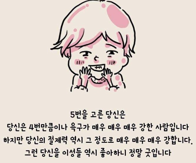 자!! 결과를 보고 어떤 생각들이 드시나요? 소름돋게 맞다고 느끼시는 분들도 있을건데요. 물론 틀리다고해서 서운하게(?) 생각하실 필요는 없겠죠? 심리테스트는 어디까지나 재미로 하는거니깐 말이죠.