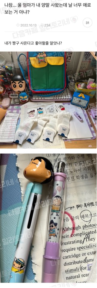 어느 정도 나이까지는 엄마가 옷을 사주는 경우들이 많습니다. 이때 자녀의 취향을 고려해 쇼핑을 하기보다는 엄마의 취향대로 쇼핑을 해서 그대로 입는 경우들이 많죠. 그런데 한 네티즌은 최근 엄마가 자신의 취형을 고려하지 않고 양말을 사 왔다는 사연을 공유해 화제가 되었는데요. 그런데 뜻밖의 반전이 있었습니다.