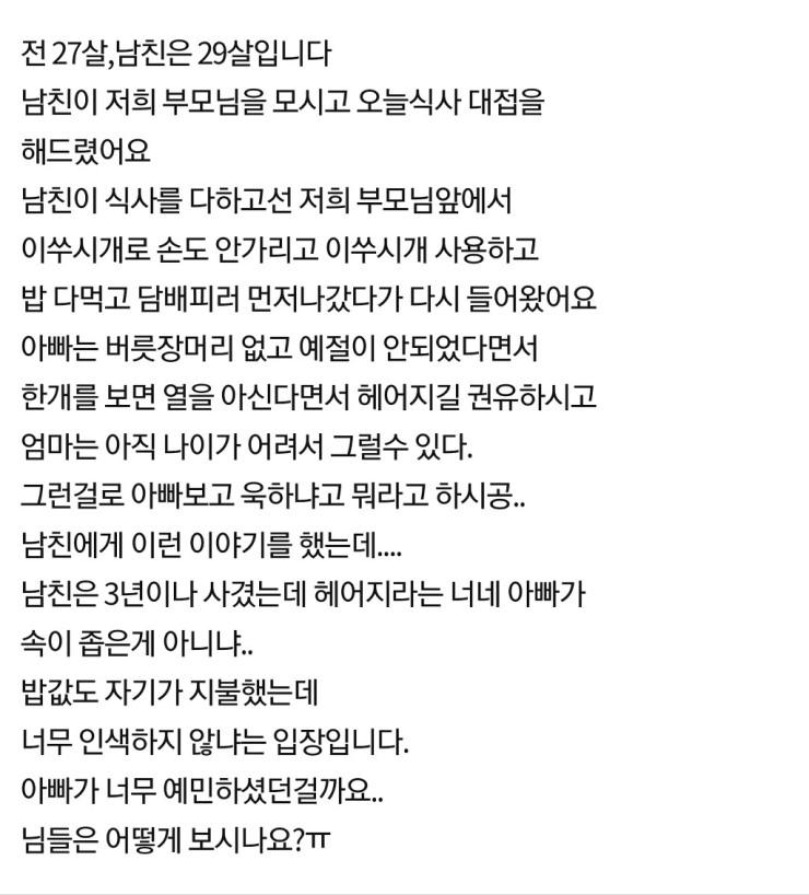 부모님과 식사 중 남친 행동 논란 하나를 보면 열을 안다 정답!!! 어른과 식사중 이쑤시는것도 문제지만 식후땡하러 자리를 비운다고? 난 상상도 못함 공유하기 게시글 관리 벼락유머 저작자표시 (새창열림) 뜨고있는뿜