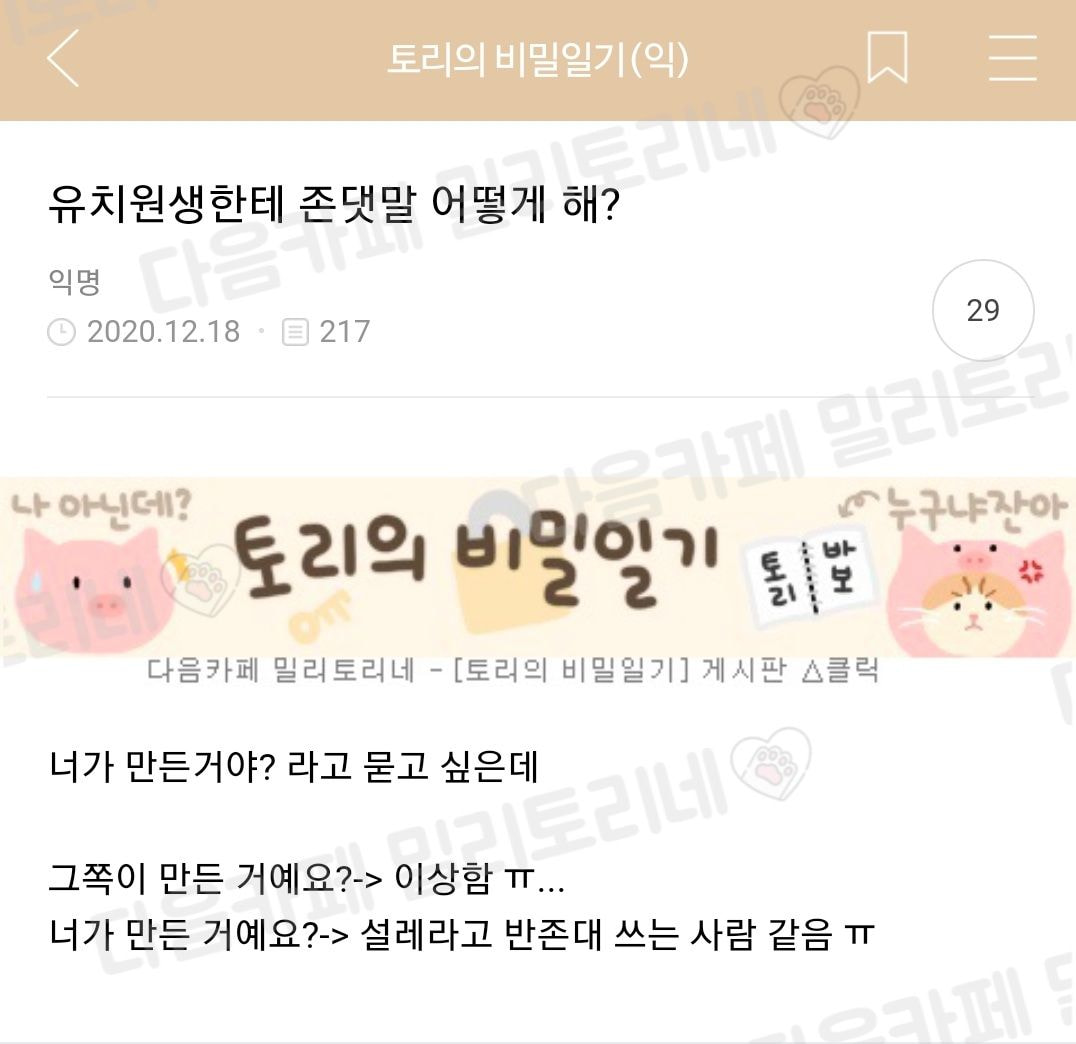 아이들에게 존댓말을 해야 하는 경우들이 있습니다. 그건 아이들에게 자존감을 높여주는 행동이기때문이죠. 한 네티즌 역시 아이에게 존댓말로 질문을 하고 싶었는데 매우 어색해서 다른 네티즌들의 의견을 구했다고 하는데요. 참 생각하는게 너무나도 이쁘네요.