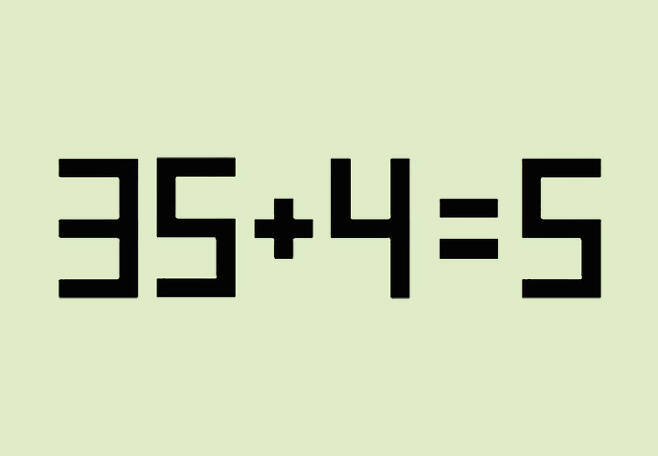 35+4=5라는 식입니다. 말이 안되는 식이죠. 하지만 하나의 숫자만 움직이면 정상적인 식이 된다고 하는데요? 과연 위의 수식에서 숫자를 하나만 움직여서 어떻게 식을 완성할 수 있을까요?