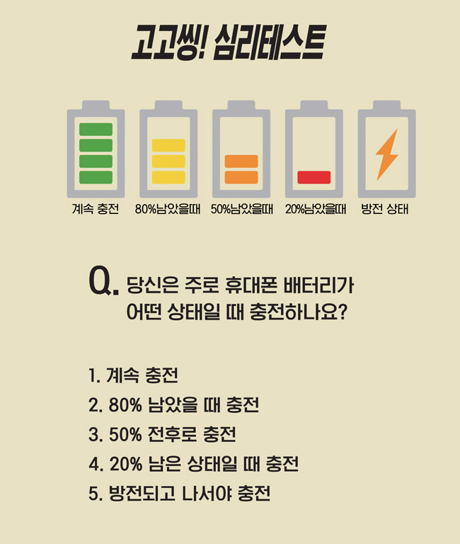 [심리테스트]당신은 주로 휴대폰 배터리가 어떤 상태일 때 충전하나요?