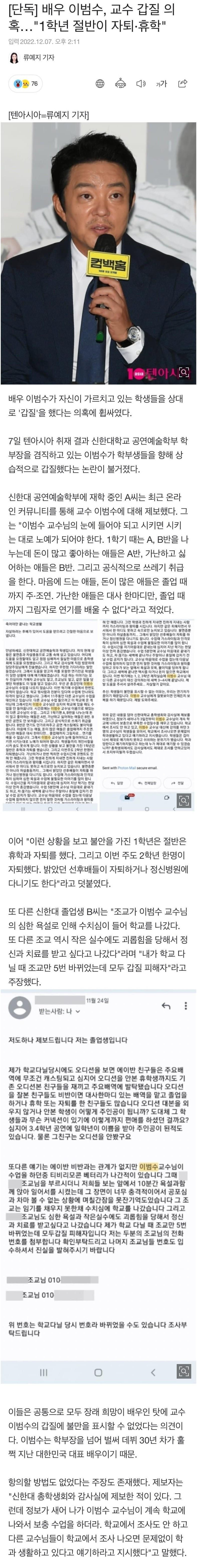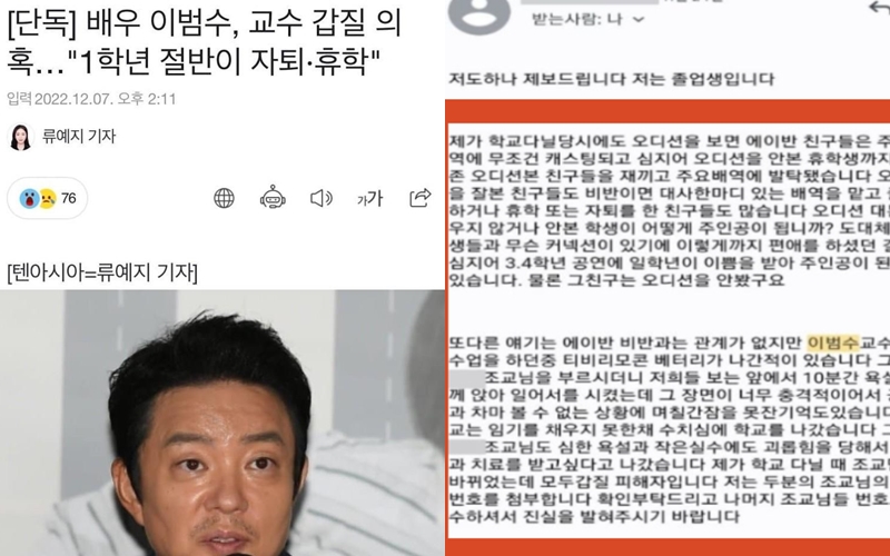 교수업무 중 갑질의혹 터져버린 배우 이범수