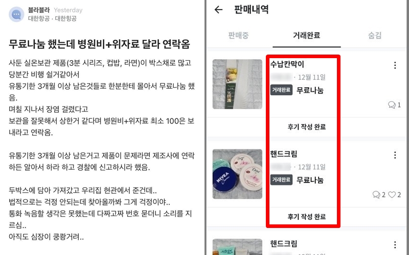 유통기한이 분명 남았고 좋은 마음으로 무료 나눔을 했는데 만약 저렇다면 진짜 다시는 무료 나눔을 하고 싶다는 생각이 안 들듯하다. 그리고 받은 사람도 양심이 없지 무료로 받은걸 가지고 유통 기한이 남은걸 확인했으면 제조사에 문의를 해야지 왜 무료 나눔 한 사람이 죄인처럼 대하는지 양심이 없구먼...