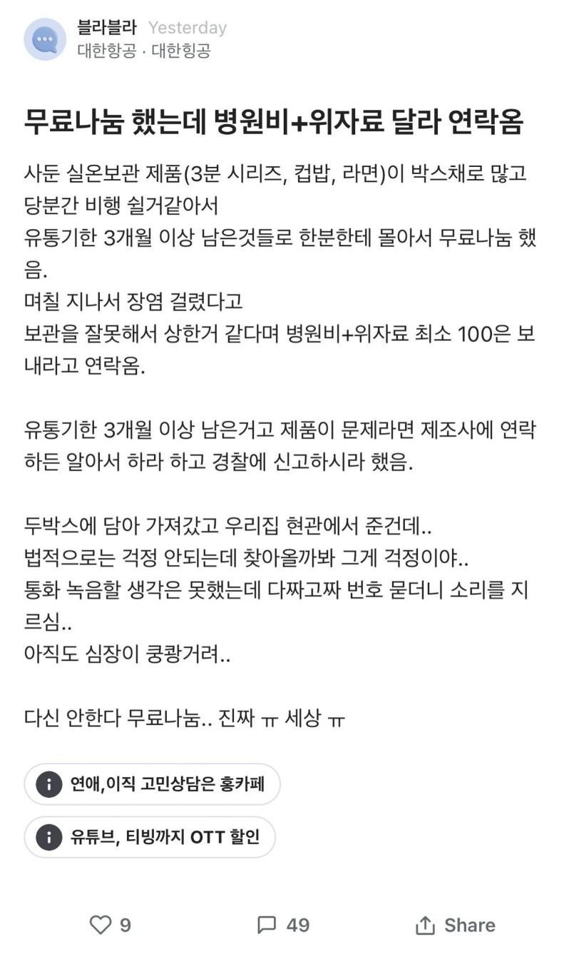 무료나눔 해줬다가 병원비+위자료 달라 연락 옴