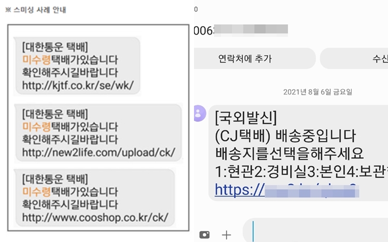 많은 분들이 온라인 쇼핑몰을 이용하면서 택배로 물건을 받는 일들이 많아지고 있습니다. 그 만큼 택배 알람 문자 등을 하루에도 수없이 받는 분들이 많죠. 그런데 이러한 택배 발송 문자를 이용한 스미싱 사례 역시 증가를 하고 있습니다. 보통 내가 택배로 물건을 받을 예정이 있으신 분들이 많이들 당한다고 하는데요.