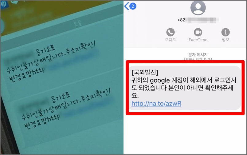 절대 눌러서는 안되는 "스미싱 문자" TOP 3(+정말 교묘해졌습니다)