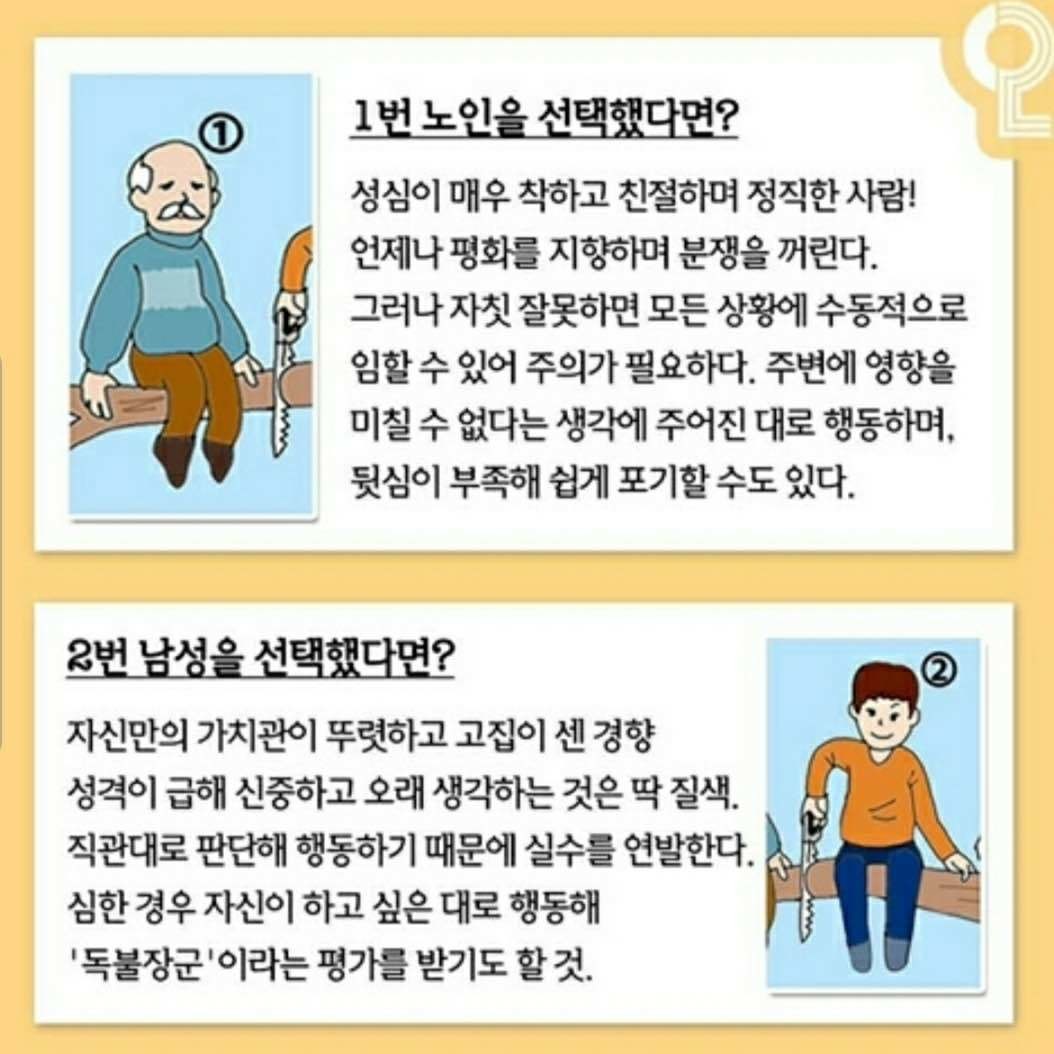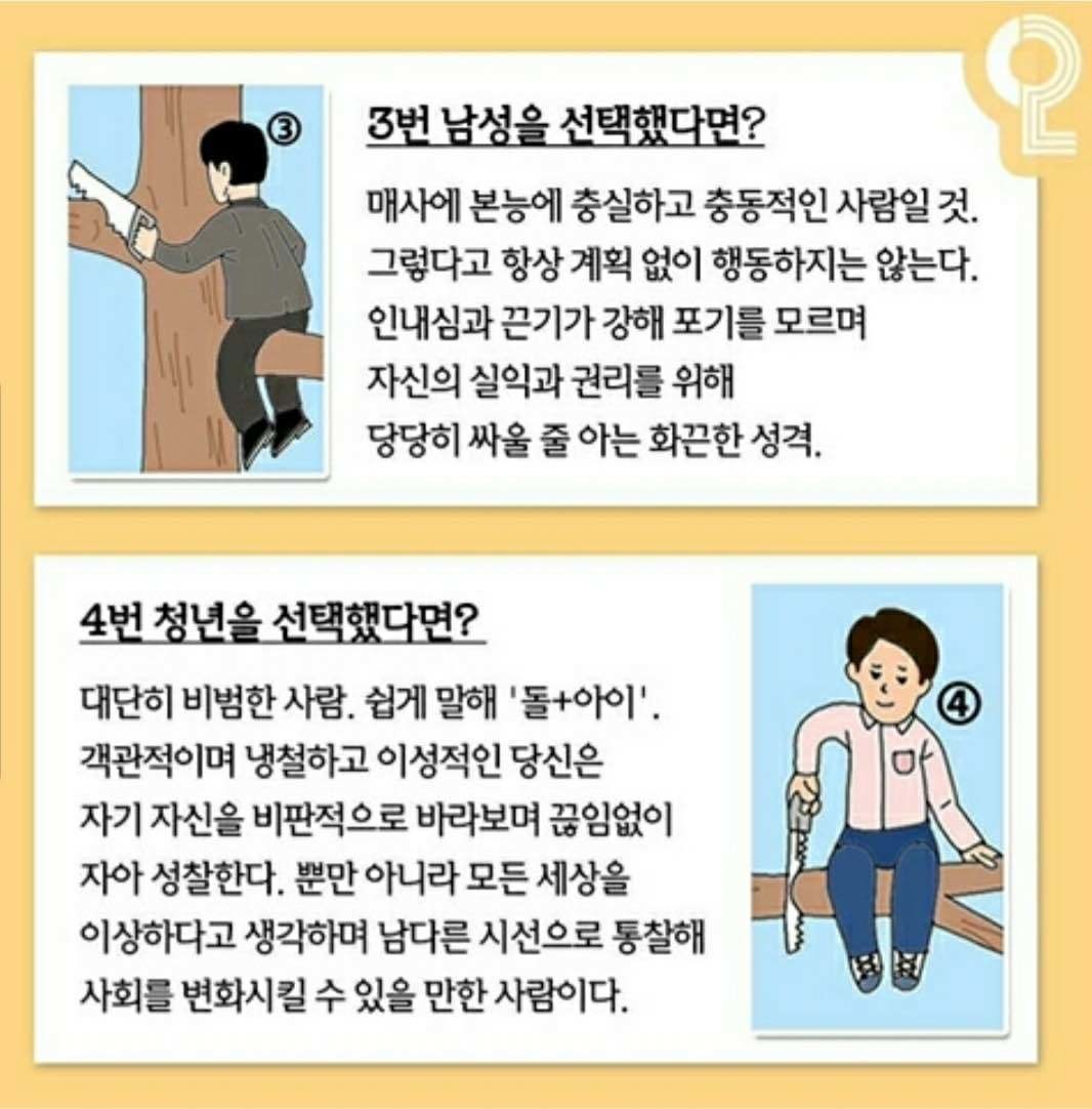 나무를 자르고 있는 사람들이 있습니다. 과연 이 중에서 여러분들이 생각하는 가장 멍청하다고 생각하는 사람은 누구인가요?