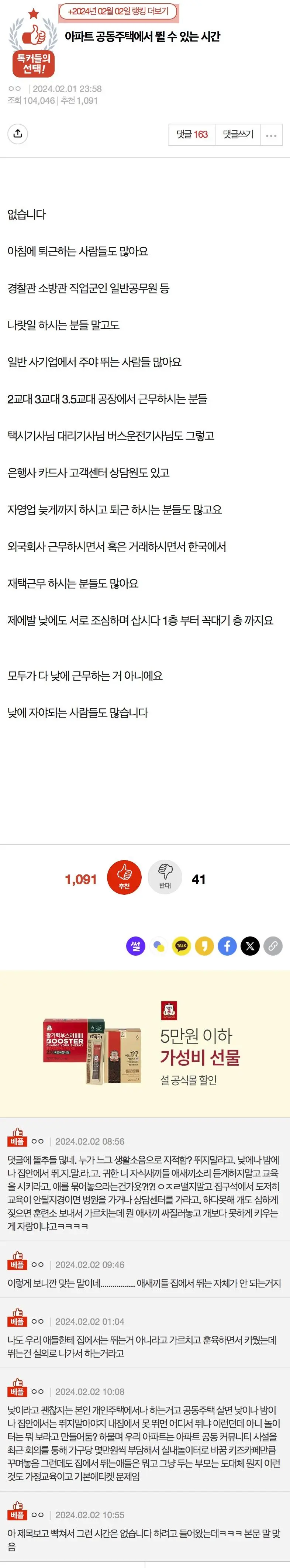 아파트 공동주택에서 뛸 수 있는 시간.jpg 아니 그런데 생각해보면 웃긴게 층간소음이라는게 아파트를 만드는 건설사에서 신경쓰고 잘 만들어야 하는거잔아 왜 그 집에 사는 사람들이 층간소음으로 서로 이래야 하냐고 공유하기 게시글 관리 벼락유머 저작자표시 (새창열림) 뜨고있는뿜