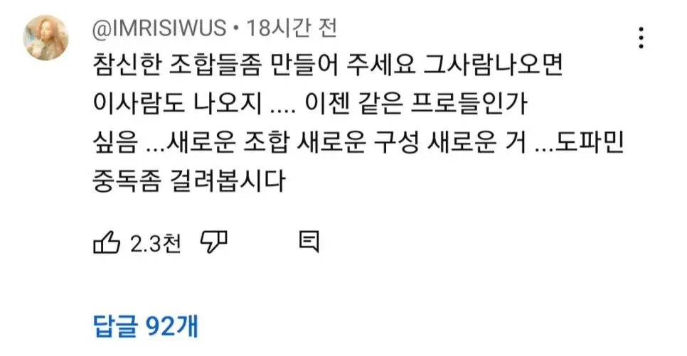 방영 전부터 반응 안 좋은 유재석 예능.jpg 이게 공감이 그래도 어느 정도 가는게 똑같은 인물들이 나와서 그냥 런닝맨 다른 버전을 찍는거랑 느낌이 다르지 않을거 같다는 생각이 들기는 함 공유하기 게시글 관리 벼락유머 저작자표시 (새창열림) 뜨고있는뿜