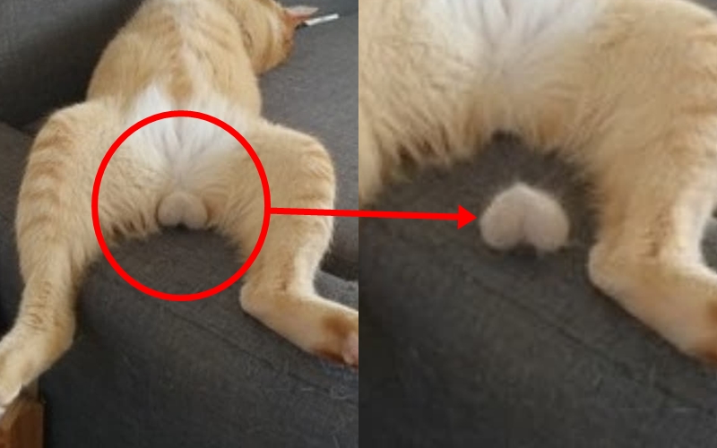 '설마 땅콩?' 자고 있던 고양이 다리 사이에 있던 충격적인 정체는?