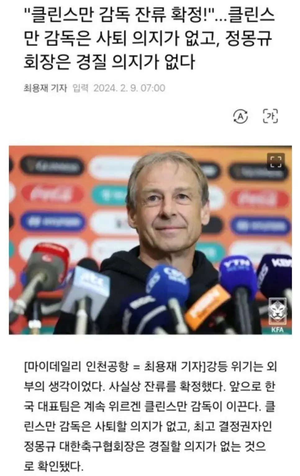 (거피셜)클린스만 잔류 확정! 그러면 일단 정몽규부터 결질을 시켜야 하는거 아닌가? 손흥민 아버지 말이 맞았어 ㅋㅋㅋ 16강도 못가고 떨어졌어야 한다니깐 ㅋㅋㅋ 공유하기 게시글 관리 벼락유머 뜨고있는뿜