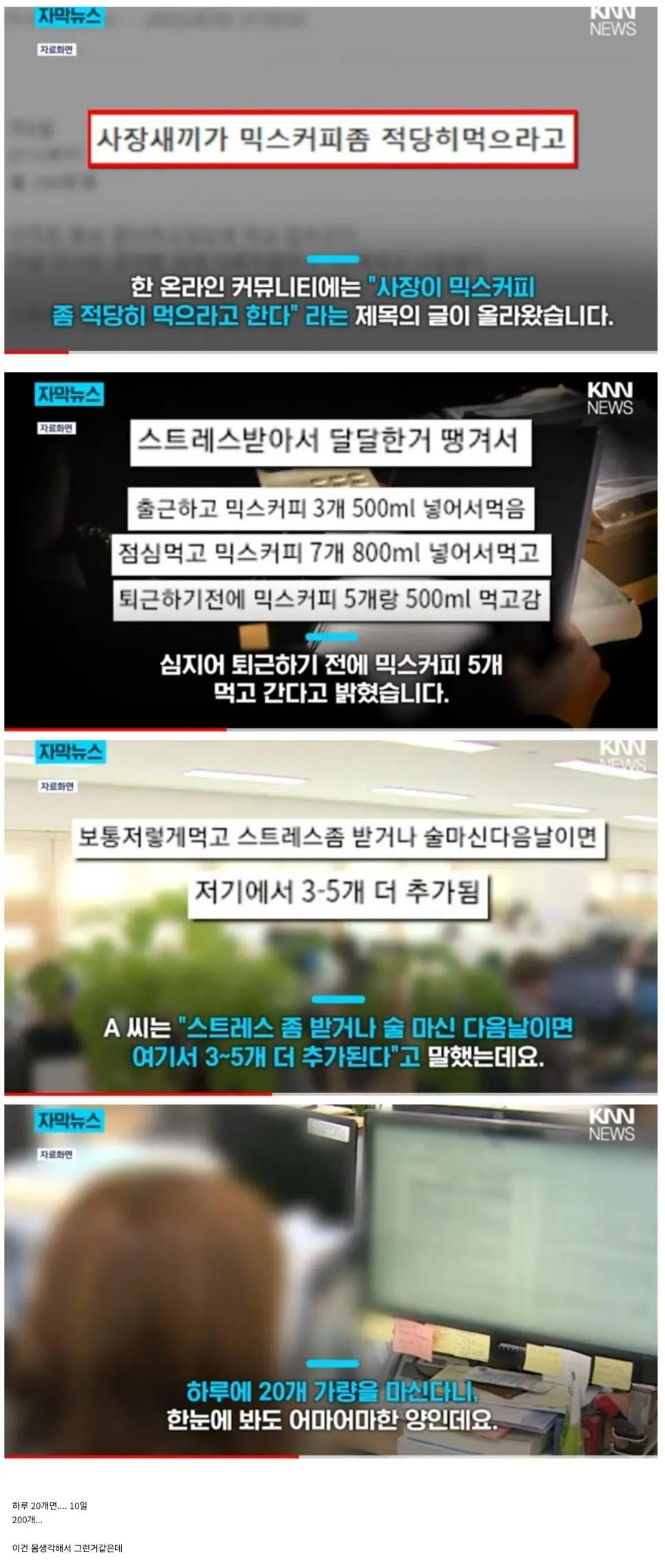 사장새끼가 믹스커피좀 그만 쳐먹으랜다 이 정도면 진짜 직원의 건강을 생각해 주는 아주 좋은 사장님 인거 같은데? 그리고 하루에 어떻게 20개를 먹냐고? 그 정도면 그냥 병인거 같은데? 공유하기 게시글 관리 벼락유머 뜨고있는뿜