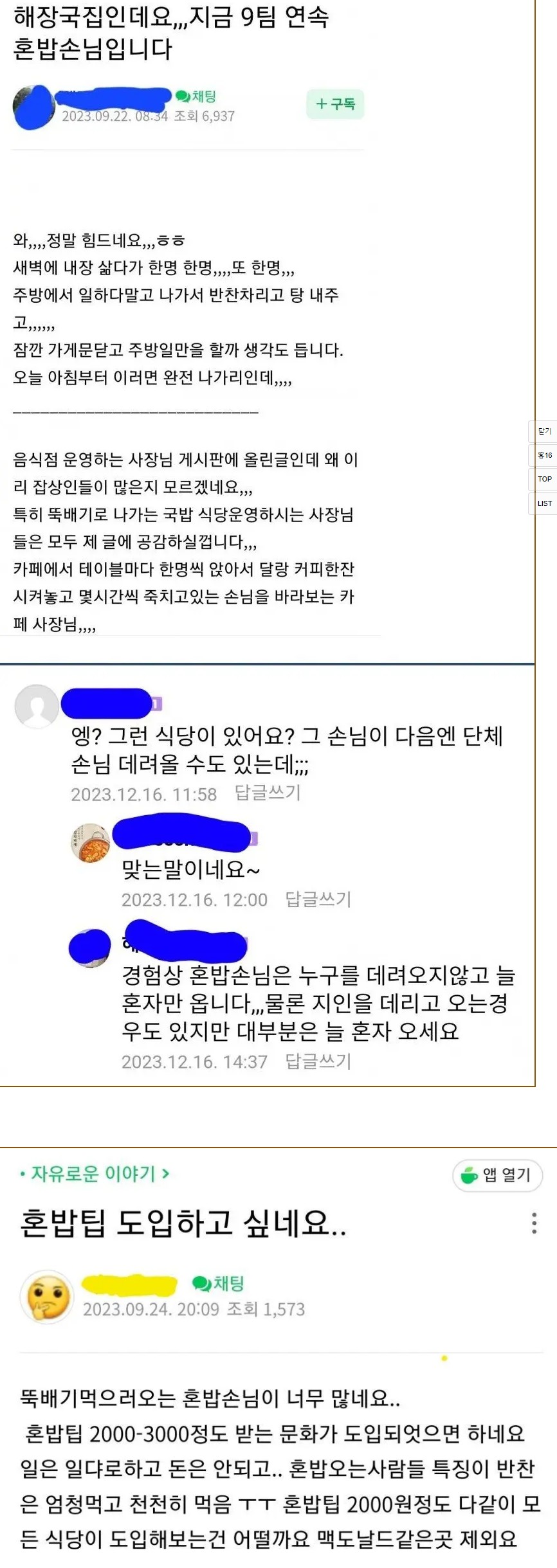 혼밥 손님이 싫은 식당사장.jpg 혼자와서 팔아주는것도 감사해 하는 세상에서 이건 무슨 마인드인지...저 사장님은 미안한데 장사를 하면 안되는 스타일이네 ㅋㅋㅋ 진자 망 이다 공유하기 게시글 관리 벼락유머 뜨고있는뿜