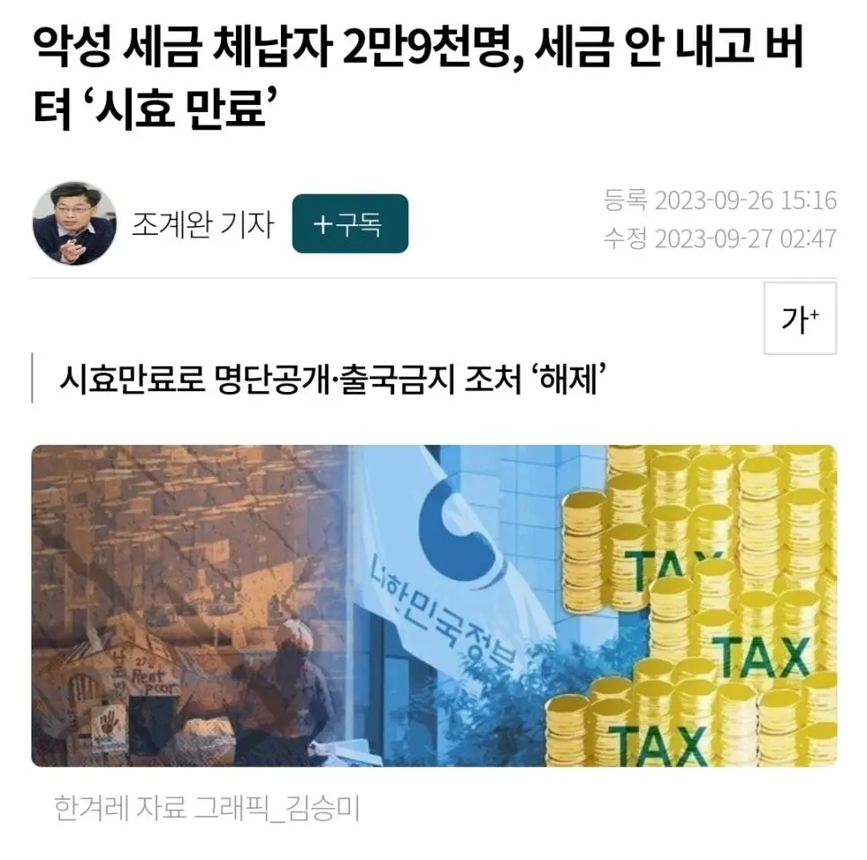 악성 세금 체납자 2만9천명, 세금 안 내고 버텨 ‘시효 만료’ 세금에 시효가 있다는 사실을 처음 알았네? 그러면 그냥 세금 안내고 버티기만 하면 되는거 아닌가? 젠장...나 같은 사람은 세금 꼬박 내는데.... 공유하기 게시글 관리 벼락유머 뜨고있는뿜