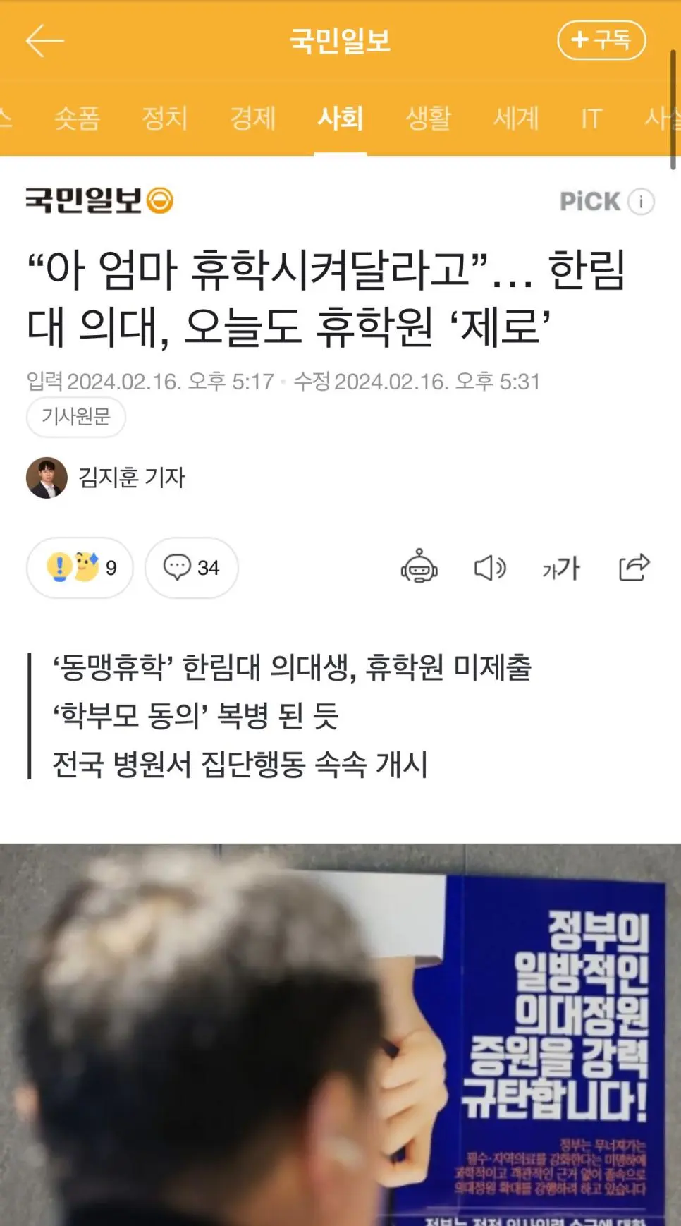 아 엄마 휴학시켜달라고! 즉.. 휴학하겠다는건 쑈!!! 결국은 엄마의 동의가 있어야 휴학이 가능한데 ㅋㅋㅋ 엄마가 동의를 안해주고 있으니 휴학은 그냥 쑈 ㅋㅋㅋ 공유하기 게시글 관리 벼락유머 뜨고있는뿜