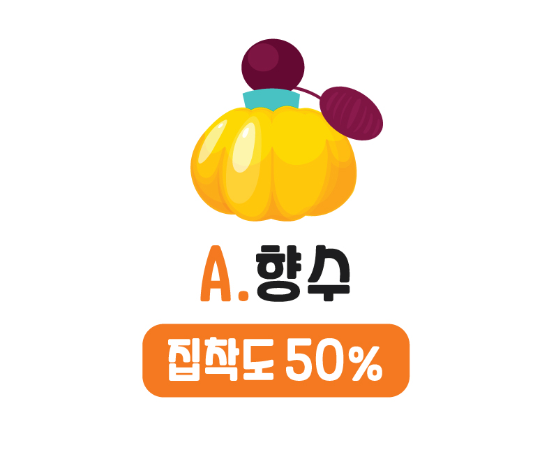 향수를 선택한 당신의 집착도는 50% 입니다. 당신은 연인과의 믿음을 중요시하는 타입으로 상대방을 믿고 있다고 할 수 있는데요. 하지만 이 사람을 놓치고 싶지 않다는 욕구와 함께 독점욕도 가지고 있네요. 이렇게 어느 정도 믿음과 집착을 공존하고 있는 당신은 애인과의 관계를 유지하는데 상당히 좋은 성격이라고 할 수 있습니다.