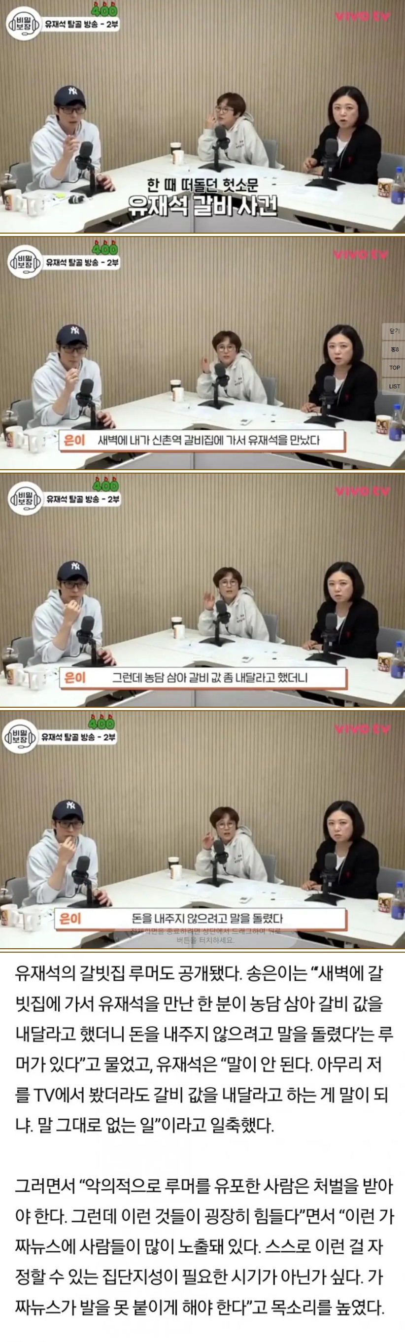 유재석이 직접 말하는 갈비 사건 디씨 꾸준글 어그로 드립이었는데 눈치없는 찐따들이 뇌절하면서 진짜 믿는 사람도 있는 악질 가짜 뉴스가 돼버린... 공유하기 게시글 관리 벼락유머 뜨고있는뿜