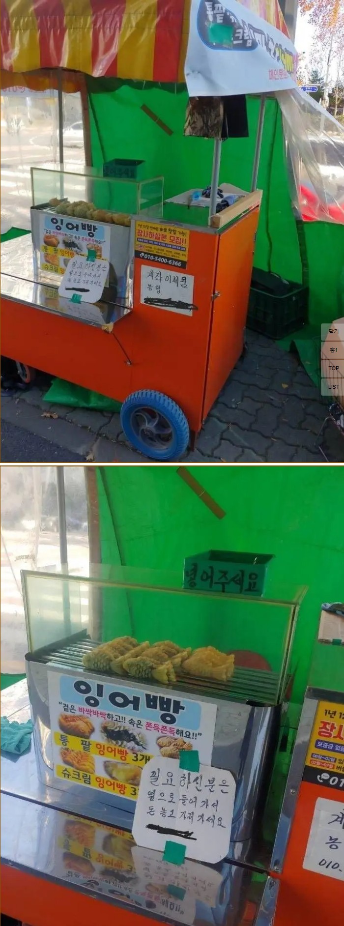 돈통 걱정은 안하고 누가 붕어빵 다 가져가면 어떡하나 걱정함.