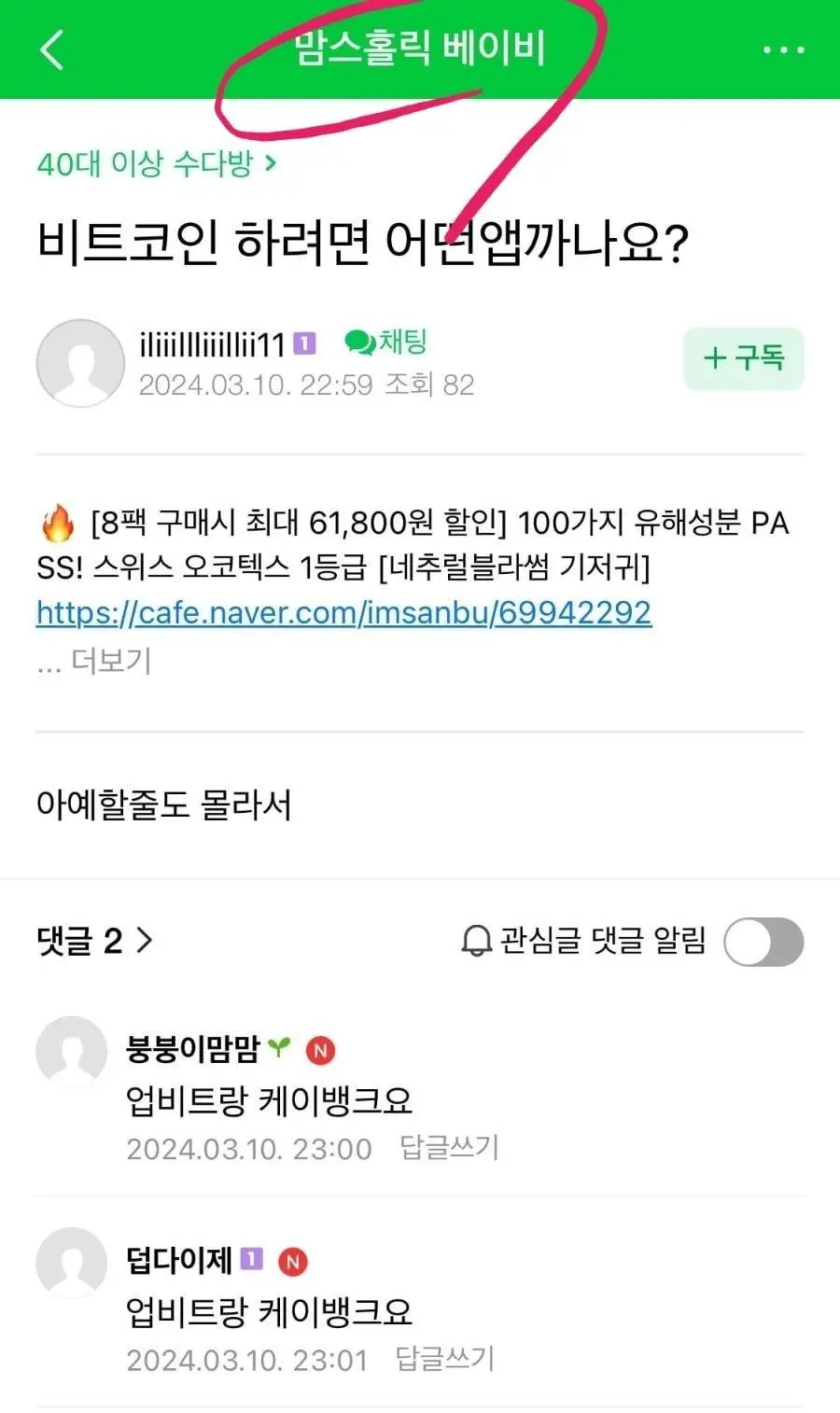 맘스홀릭 비트코인진입