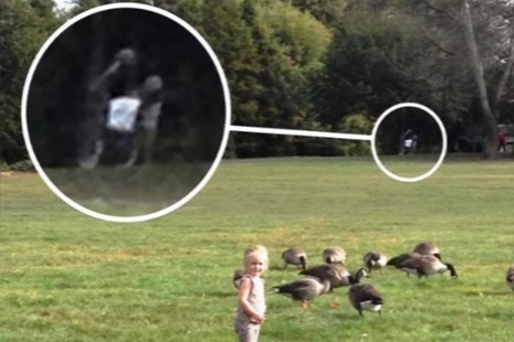 #평화로운 성을 배경으로 찍은 아기와 오리사진 뒤에 나타난 유령의 형상들