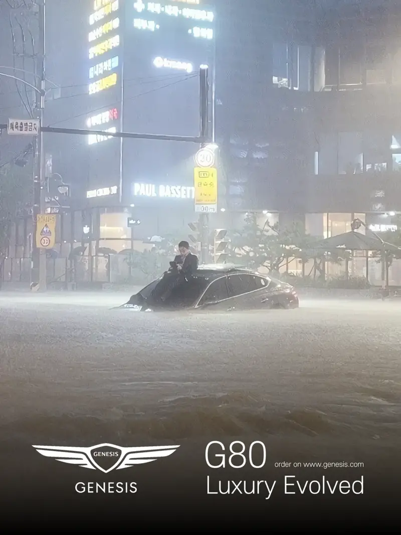 그런데 다양한 침수 차량 중 유독 네티즌들의 시선을 사로잡은 차량이 하나 있습니다. 강남역 제네시스좌로 이름 붙여진 이 사진은 모든 각도로 사진이 있을 만큼 화제가 되고 있죠. 이렇다보니 네티즌들 사이에서는 최근 강남역 폭우로 인한 침수가 자연재해가 아닌 인재라는 점을 강조하기 위해 이 사진을 패러디로 활용하고 있습니다.
