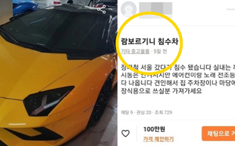 '람보르기니 침수차 100만원' 당근마켓에 매물...진짜???????